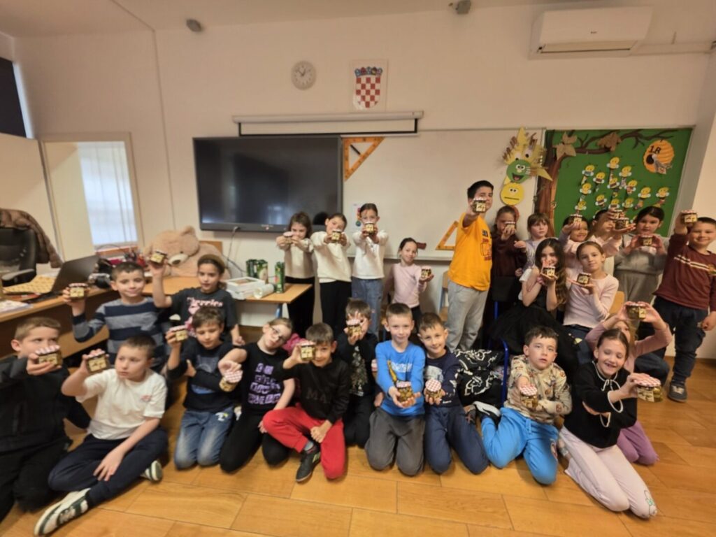 Kad se sve ohladilo, napunili smo teglice i ponosno zalijepili naljepnicu s natpisom OŠ Lapad.