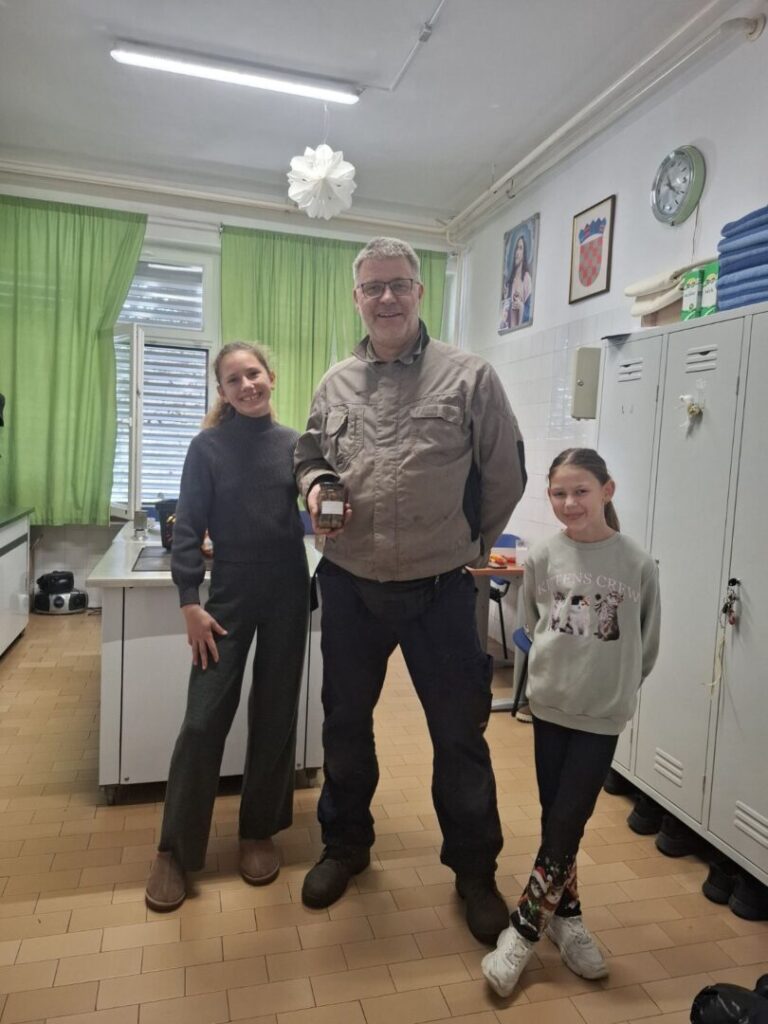 Dio teglica koje smo koristili kod kuće nismo bacili, nego smo ih ponovno upotrijebili. Hvala našim spremačicama koje su nam pomogle pripremiti i konzervirati teglice. Hvala i kuharicama koje su nam ustupile štednjak i veliki lonac kako bismo naše plodove zaparili.