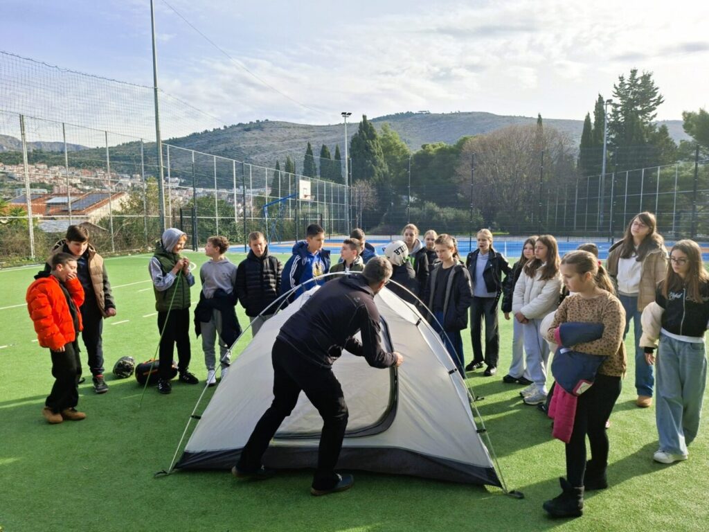 U praktičnom dijelu razvijali su vještine orijentacije (karta, kompas i prirodni znakovi) te sudjelovali u izradi šatora za siguran boravak u prirodi.