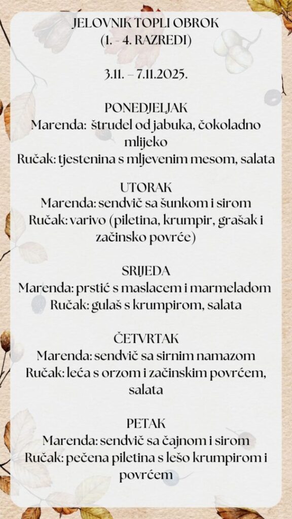 Nacionalne smjernice za prehranu učenika u osnovnim školama