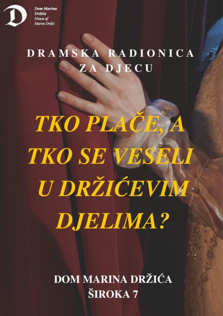 Dom Marina Držića s veseljem obavještava o početku višemjesečnih dramskih i glazbenih radionica za učenike 3., 4. i 5. razreda osnovne škole pod nazivom „Tko plače, a tko se veseli u Držićevim djelima?“.