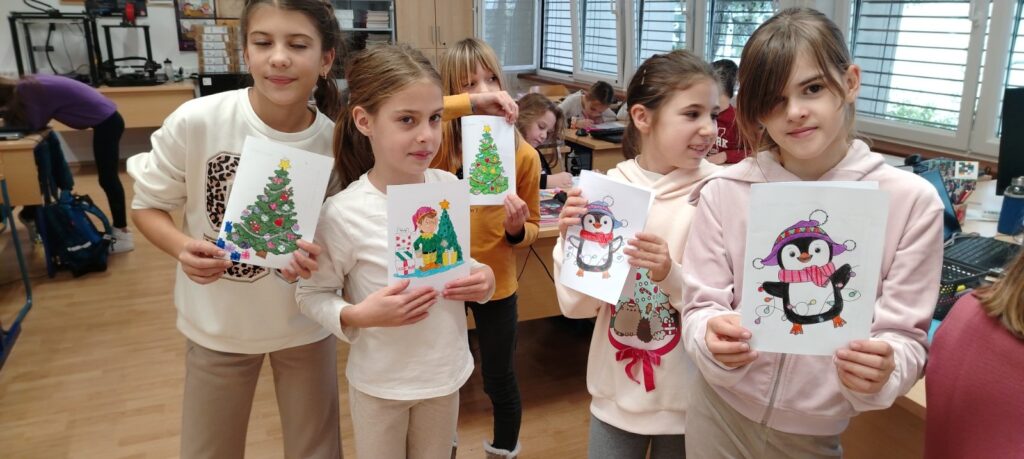 Učenici 3. razreda su na radionici Svijetleće čestitke imali zadatak obojati svoje božićne čestitke koje su na kraju zasvijetlile tako što su uz pomoć mentora spojili jednostavni strujni krug sa svijetlećim diodama, bakrenom trakom i baterijom i na taj način su se upoznali s jednostavnim strujnim krugom.