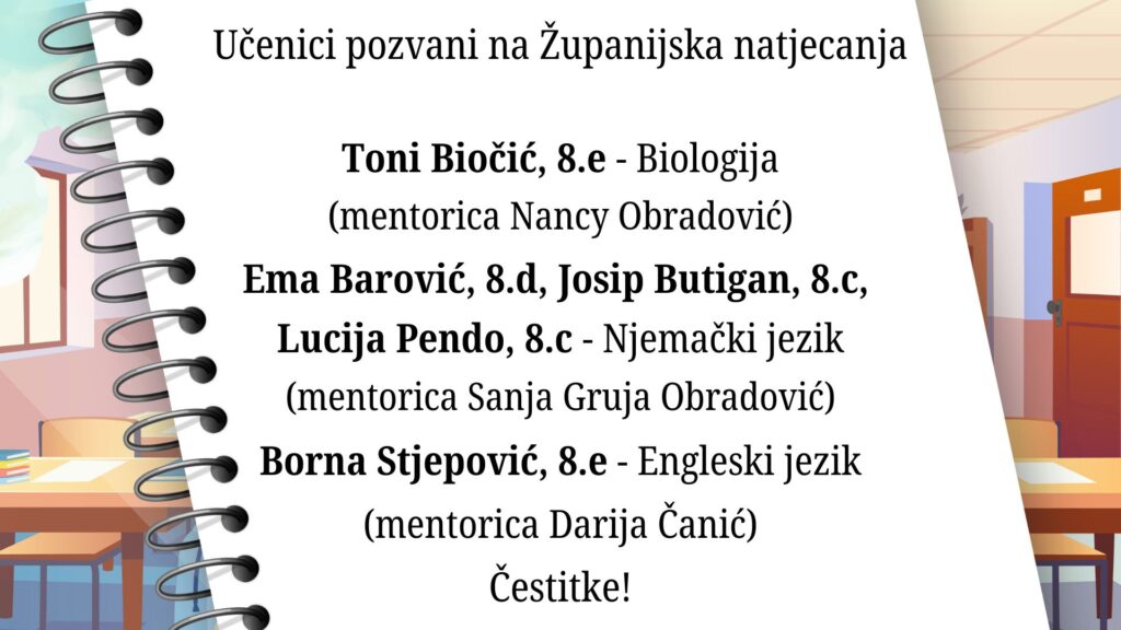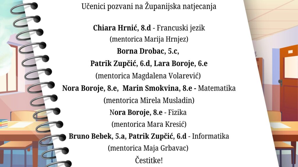 Učenici pozvani na Županijska natjecanja