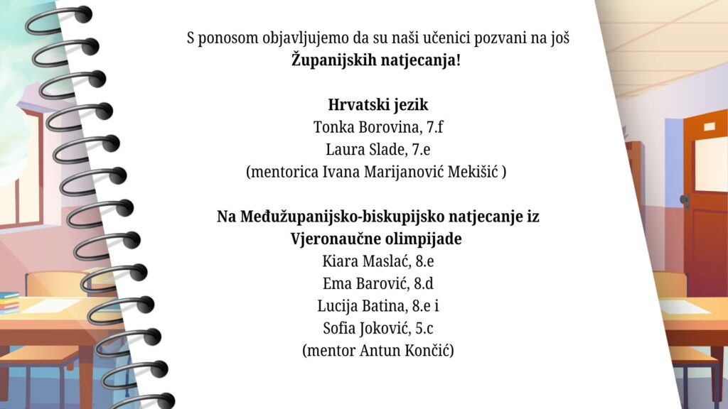 Zahvaljujući znanju, trudu i ustrajnosti, naši su učenici izborili plasman na županijska natjecanja.