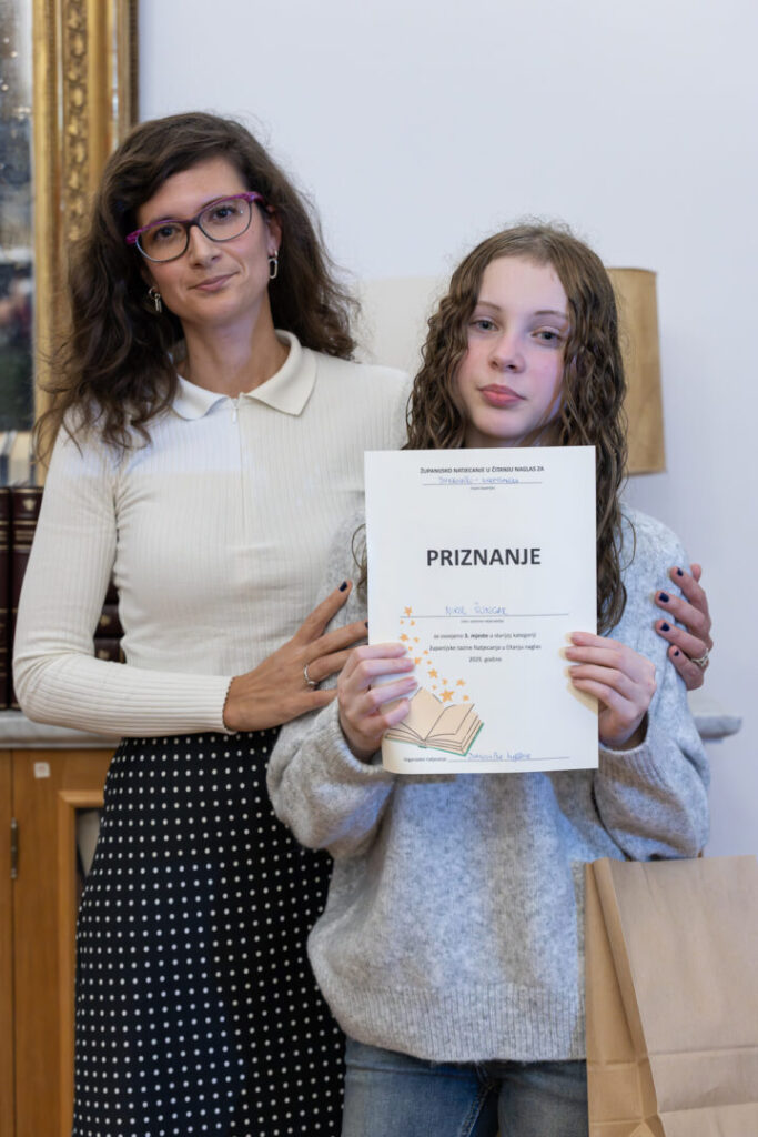 Pobjednici županijskog natjecanja, Evelin Vidak i Borna Bračić (OŠ Montovjerna), predstavljat će našu županiju na Državnom natjecanju u čitanju naglas, koje će se održati 20. i 21. studenoga u Sisku.
